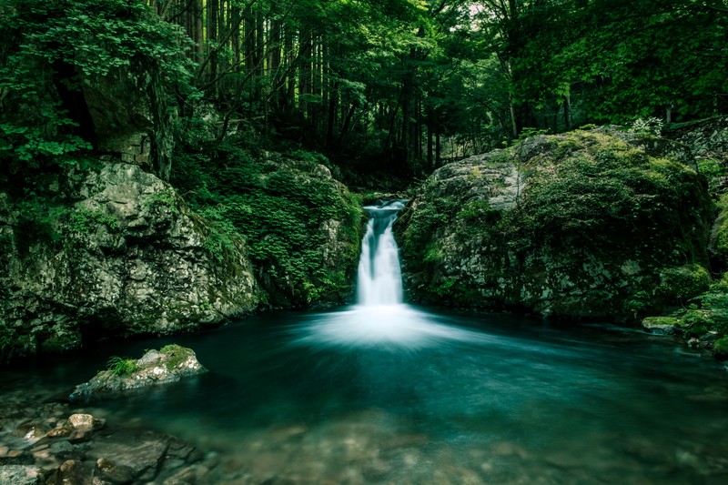 そこは、岩の隙間から湧き出る水が一カ所に集まり、1mに満たない小さな滝を作っている場所でした。